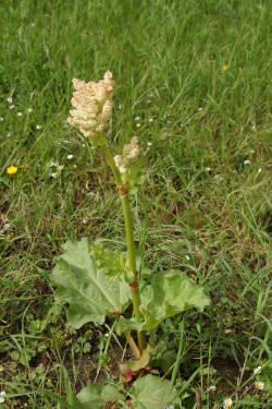 Même en pleine forme, une rhubarbe fleurit et il faut couper les fleurs dès le début.