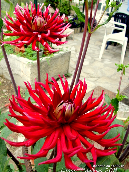 Quand je pense que j'en avais donné à une voisine qui pensait que c'était parfaitement inutile de les rentrer l'hiver "non non, regarde, tu fais comme moi, tu les laisses en terre et tu les buttes". Bon, moi, je fais comme je veux, je les rentre pour l'hiver, et cette année, j'ai encore mes dahlias, tandis que ma voisine ... plus rien. - 15° en février, ils n'ont pas fait un pli !