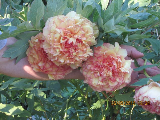 Je suis bien contente que tu sois revenue avec de si jolies photos de ton jardin! Tu as une collection de pivoines assez sympathique, et les dernières m'ont tapé dans l'oeil! Je ne savais même pas qu'il en existait des jaunes, alors des jaunes marginées de rose! :love: