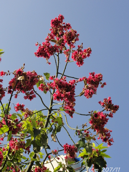 En fait, le "Brachychiton Acerifolius" a des fleurs en tulipe, alors que je n'ai jamais vu rien de semblable aux inflorescences de cet arbre mystère: tiges rayonnant autour d'un point central et portant des petites boules rouges...limonello a écrit :Sur la premiere photo ,on voit les coques séches tres bien !!