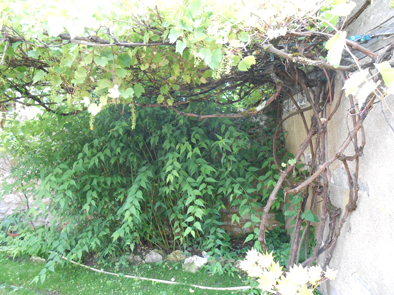 Nous avons un très vieux pieds de vigne principal qui court de manière anarchique. D'après la propriétaire c'est son mari qui l'aurait planté en 1947. Bref, nous sommes obligés de mettre au sol cette vigne pour refaire une structure solide et pour réaménager la tonnelle de manière à ce que ce soit entretenu. A ce jour le raisin "chasselat" est bon mais les grappe sont pleines de pépins et les grains assez petits ?