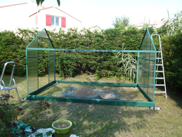 Ah Ah je sais qu'il y en a plein qui attende cela impatiemment, je vais donc laisser durer le suspense , dans un peu plus de 2 semaines la serre sera sur pied, et je peux vous promettre de mettre énormément de photo car j'attends cela moi aussi depuis longtemps!!!