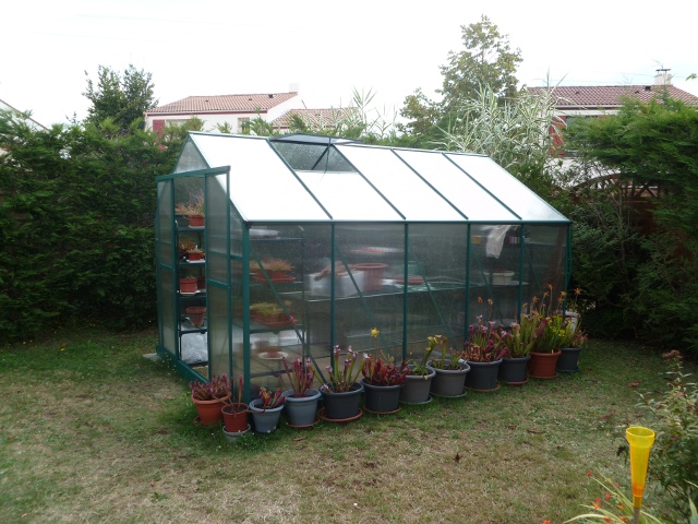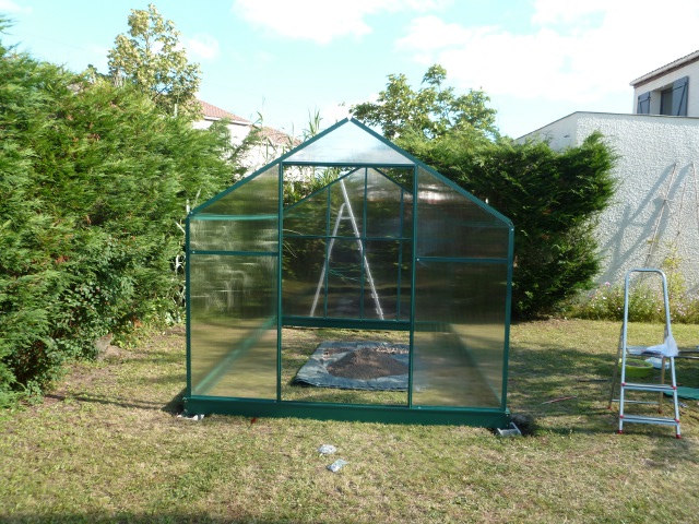 Quelques questions, chez toi -a-t-il beaucoup de vent ? Souffle-t-il régulièrement et avec beaucoup de force ? As-tu pensé à abriter ta serre si c'est le cas ? Pourquoi ne pas l'avoir adossé au mur que je vois à proximité au lieu de l'exposer en plein jardin sans rien autour? Qu'en est-il de la structure ? Ton plexiglas est-il assez résistant pour supporter des bourrasques qui s'engouffreraient l'hiver dans la serre sans risquer de tout souffler ?