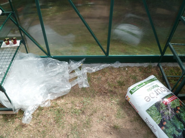 Nous terminerons la serre demain après-midi et coulerons le béton dans les parpaings demain soir!