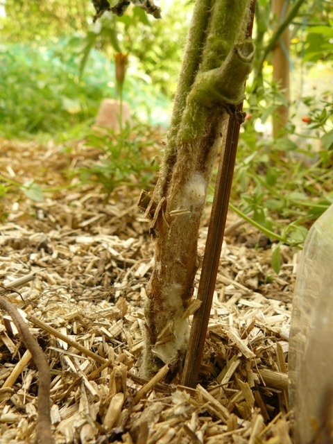 J'ai enlevé les plants touchés et n'ai remarqué aucun champgnon ni problème racinaire particulier. Les plants n'ont pas manqué d'eau et en plus ils étaient bien paillés, ils étaient bien verts donc à priori pas de manque de soleil non plus...