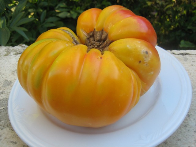 Comme zouf les miennes produisent bien et sont parmi les premières à murir, la + grosse l'année dernière 870gr, que du régal et peu de graines pour une si grosse tomate.