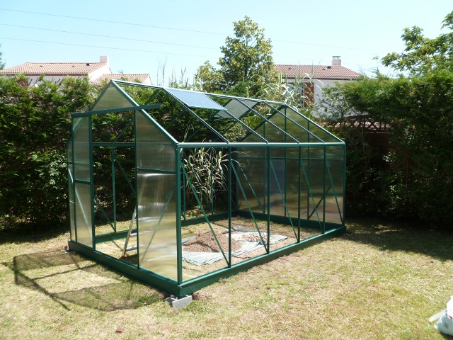 Quelques questions, chez toi -a-t-il beaucoup de vent ? Souffle-t-il régulièrement et avec beaucoup de force ? As-tu pensé à abriter ta serre si c'est le cas ? Pourquoi ne pas l'avoir adossé au mur que je vois à proximité au lieu de l'exposer en plein jardin sans rien autour? Qu'en est-il de la structure ? Ton plexiglas est-il assez résistant pour supporter des bourrasques qui s'engouffreraient l'hiver dans la serre sans risquer de tout souffler ?