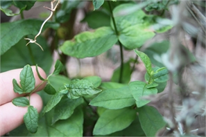 Voici les photos. Excusez moi du retard... Sur la photo de la nouvelle grimpante, je tiens les feuilles de l'autre clématite entre mes doigts.