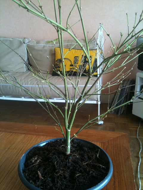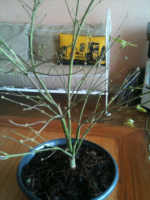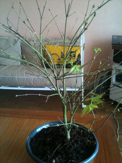 J'ai rempoté un petit érable afin d'essayer d'en faire un bonsai..