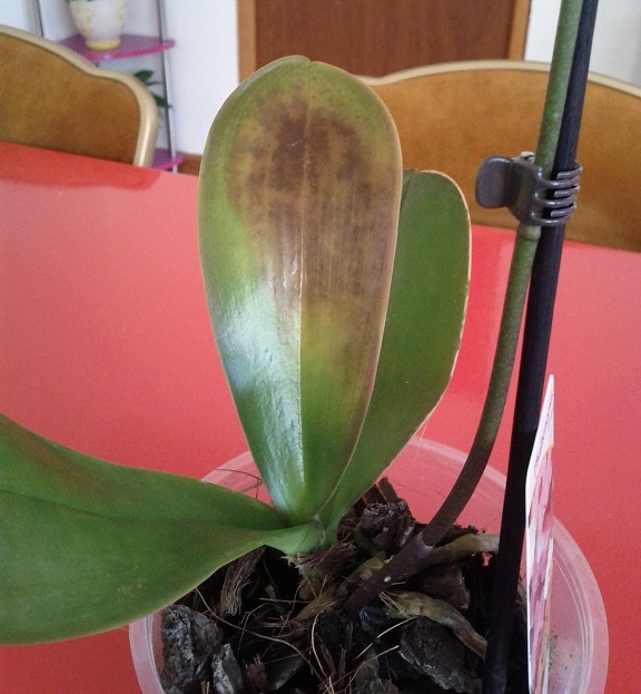 Les premiers jours tout va bien mais depuis quelques jours, ma fleur présente une grosse tâche brune sur les feuilles.