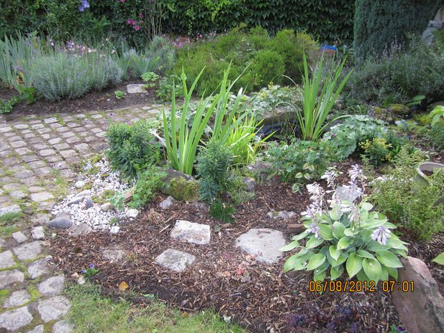 posée à sa place définitive après retrait de l'hosta(bien appréciée par les gourmandes malgré le broyat ) qui, va découvrir un autre horizon !