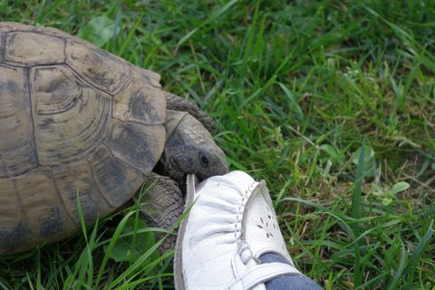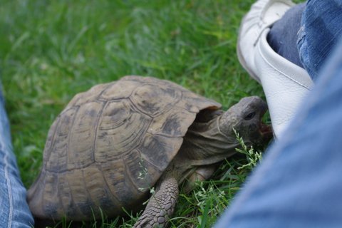 Bonjour,j mon grand pere avait trouvé Rosalie la tortue,dans le jardin en 1926 année ou il avait achete le terrain et ou il a construit sa maison...elle était déjà adulte et amputée d'une patte arrière. C'est moi la petite fille de 54ans qui vit dans cette maison aujourd'hui et Rosalie est toujours là ! Le jardin c'est son espace elle en connait tous les recoins, elle cavale !!!c'est incroyable la rapidité !Elle me suis comme un petit chien! et tous les soirs elle va se coucher dans une petite cabane que mon grand pere lui avait faite ! ...elle ne veut qu'une sorte de salade la laitue et ne mange que le coeur jaune ! j'ai tenté de changer de salade....elle lui a touné la carapace !!!!En fait Rosalie est un male...Qui pourrait me dire comment je peux connaitre son age reel 9a fait 86 ans qu'elle vit ici ! et comme je l'ai indiqué elle etait déjà adulte en 1926 ! il se pourrait qu'elle me survive !