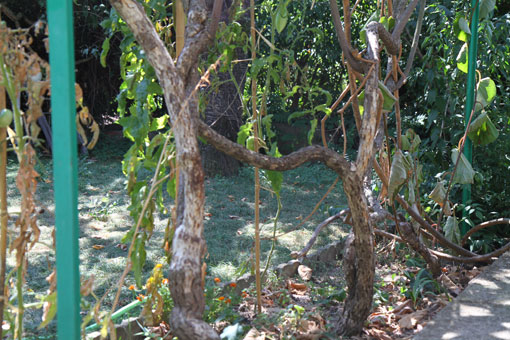 Nous avons trois pieds de kiwi dans le jardin qui forment une tonnelle. Le pied qui portait les fruits s'est mis à sécher, il y a une dizaine de jours alors qu'il était couvert de fruit et que nous n'avons rien modifier à son environnement. J'avais toujours entendu dire que les kiwis ne craignaient aucune maladie. Je me demande ce qui a pu se passer. J'ajoute quelques photos . Des pistes ?