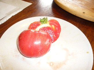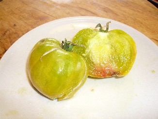 la n° 2 est aussi une assez grosse tomate (10 à 12 cm), analogue à la n°1 mais plutôt verte et blanche, très pulpeuse avec assez peu de graines.