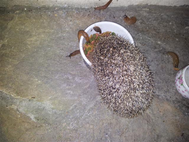 On dit qu'ils ont un fin odorat. Alors, est-ce une légende que les hérissons mangent des limaces ...Autre possibilité: j'avais embroché la limace avec un couteau et ils n'aiment pas l'odeur d'intérieur ... Ou ?...