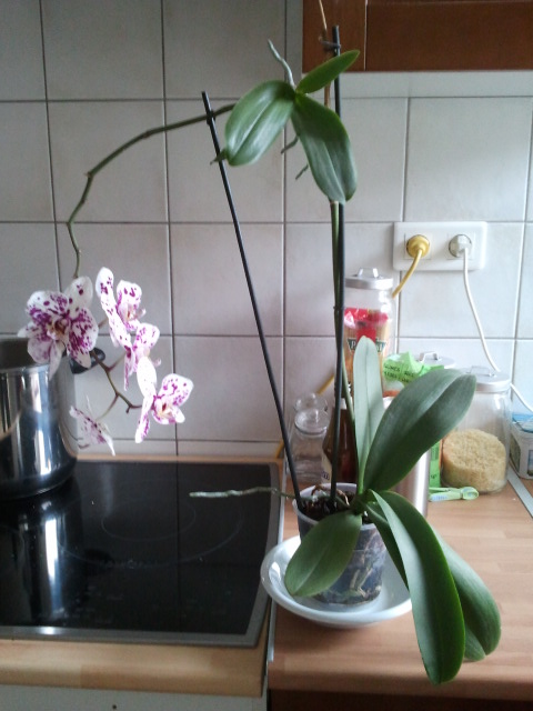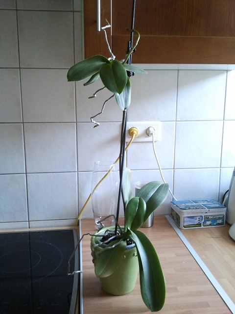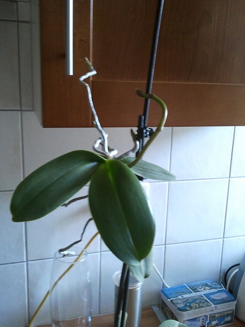 Le keiki se trouve à 45 ou 50 cm de haut sur la hampe, il est en train de faire une nouvelle hampe et donc, je risque de me retrouver avec une orchidée d'au moins un mètre de haut... Oui oui, je me doute que vous allez dire "quel bonheur" et je partage le même sentiment, mais comment puis-je m'assurer que la première hampe va supporter le poids du keiki en fleur ?