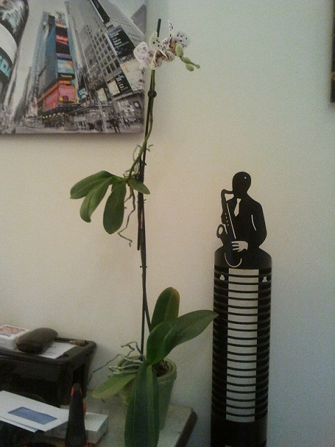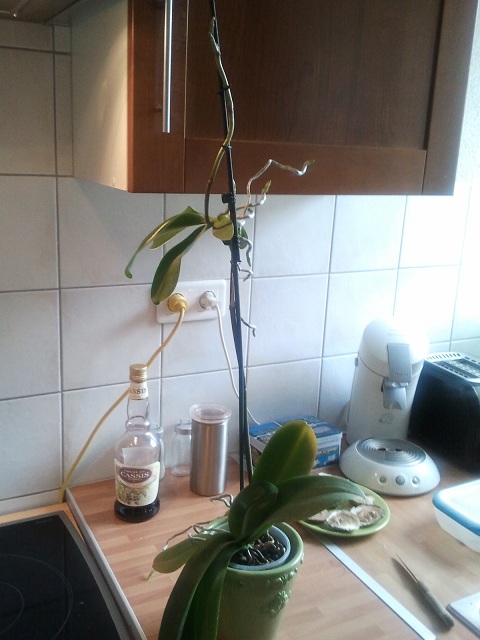 Et donc maintenant qu'il est bien en forme, ô surprise, une nouvelle hampe pousse et fait déjà 10 cms. Je crois qu'il est trop tard pour couper et mon soucis le voilà :