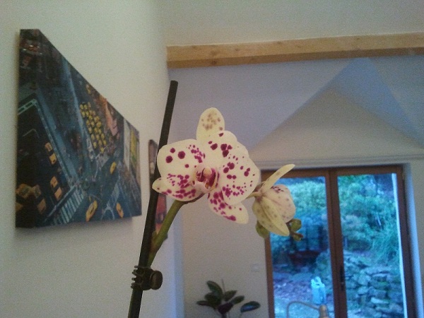Au bout de 3 mois, le keiki non coupé a fait une simple fleur puis a lancé la croissance d'une nouvelle hampe. j'ai fait en sorte de maintenir la hampe pour ne pas qu'elle casse et donc j'ai eu le bonheur d'avoir des fleurs du mois de juin 2011 au mois de mai 2012 sans interruption.