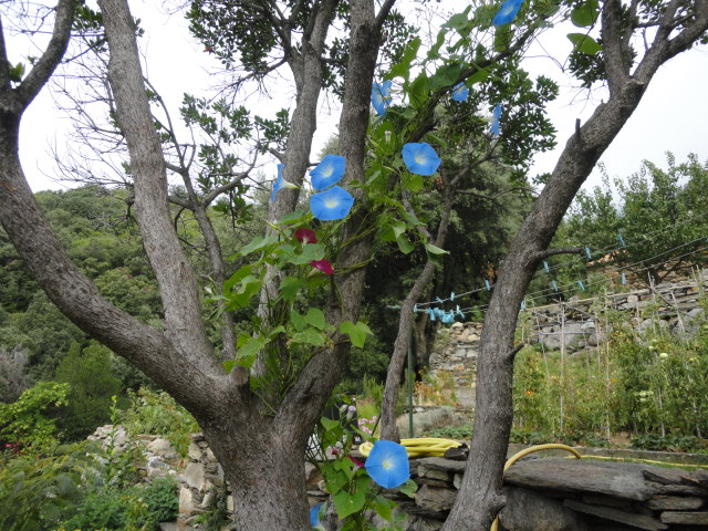 alors j'ai eu cette idée de l'embellir un peu. J'aurais aimé que les ipomées recouvrent toutes les branches mais elles n'ont pas voulu.
