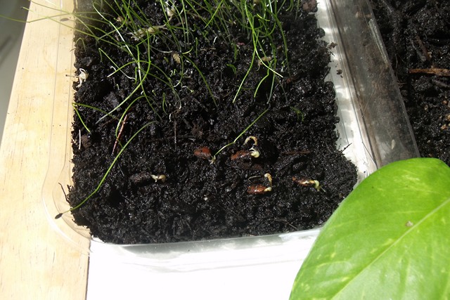 j'ai transféré les graines dans des pots car la profondeur de terre n’était pas suffisante car elle font une racine fine qui file bien profond et dessus perpendiculairement, proche de la graine, de plus petites.