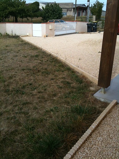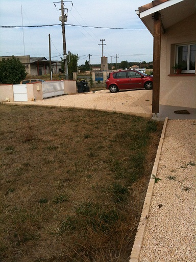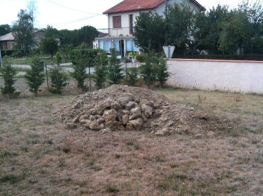 nous aimerions commencer à fleurir un peu notre jardin et j'aimerais avoir vos avis et conseils pour la création d'un massif (à l'emplacement de la grosse motte de terre ;)) et d'une bordure fleurie (le long des bordures en pierre). qu'en pensez vous ?? que mettre ??