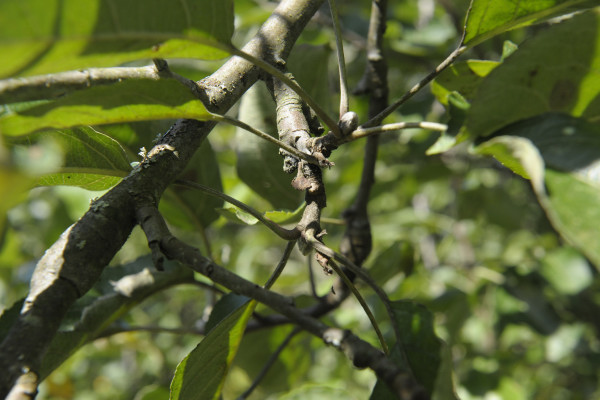 L'attache d'un fruit porté précédemment a produit une bourse à partir de laquelled'autres fructifications se feront. Une bourse est toujours à préserver .