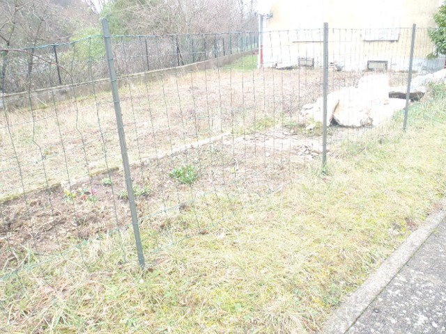 J'ai pu rentrer plus tôt aujourd'hui, il faisait encore jour, je suis allée prendre des mesures. Il y a 9 piquets en tout, espacés de 1,90 m. Le grillage est en bon état, assez récent, mais il m'a l'air "souple", facile à tordre... Les grimpantes, j'ai pas trop envie de tenter...