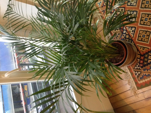 L'automne arrive et il évolue bien. Il a fait 4-5 grandes nouvelles tiges qui ne se sont pas encore "ouvertes" et il a laissé jaunir qlq feuilles en bas (ce qui semble normal pour un palmier).