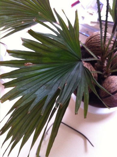 J'ai acheté il y a environ 4 mois un joli palmier Livistona Rotundifolia (qui visiblement n'est pas simple à acclimater).
