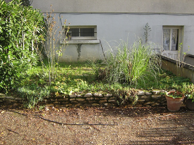 c'est ce que je voulais faire au départ et je ne suis pas arrivée alors je pensais seulement une bande de ???cm contre le mur avec des plantes hautes et juste devant avec des plantes basses ou descendant du muret en pierre et laisser reposer l'herbe entre les 2 mais es encore une bonne solution!!!! j'aurais aimer rouge ou rose, tape à l'oeil, l'entrée est juste en face et que cela reste vert ou propre l'hiver ou quand il pleut.
