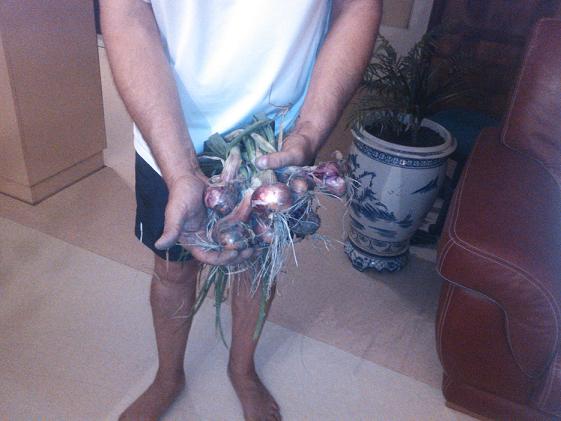 Ici, ils font des oignons rouge/violet, il me semble qu'ils sont encore plus gros !