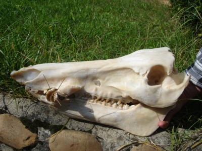 ça me semble assez convaincant mais doudou persiste avec sa biche , or les crânes de biches et cerfs que j'ai vus sur le net ne ressemblent pas à ce crâne long et plat , de plus devant le crâne des cervidés , à l'emplacement du nez , il y a une cavité assez importante