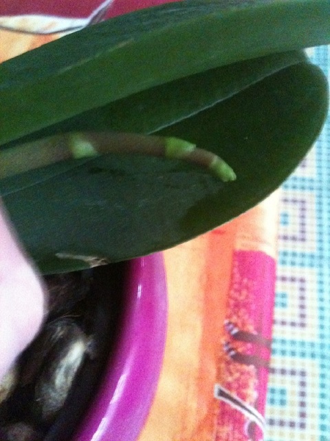 Mais, hier, quand, je lui ai fait prendre l'eau. J'ai remarqué une tige qui pousse entre les feuilles. Il y a des bourgeons dessus comme sur la grande tige.