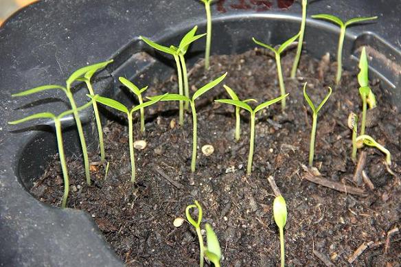Tes plantules sont mignonnes, mais j'ai l'impression que la petite tige est déjà bien haute et grêle sous les cotylédons. C'est peut-être l'effet de la photo ?