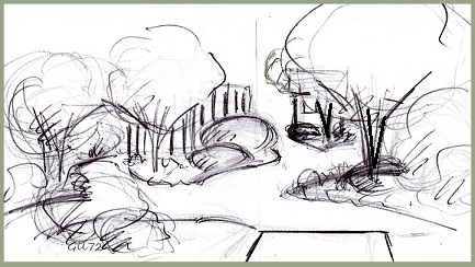 J'ai planché sur les ambiances et perspectives (arbres/arbustes). J'essaierais de te passer un croquis demain.