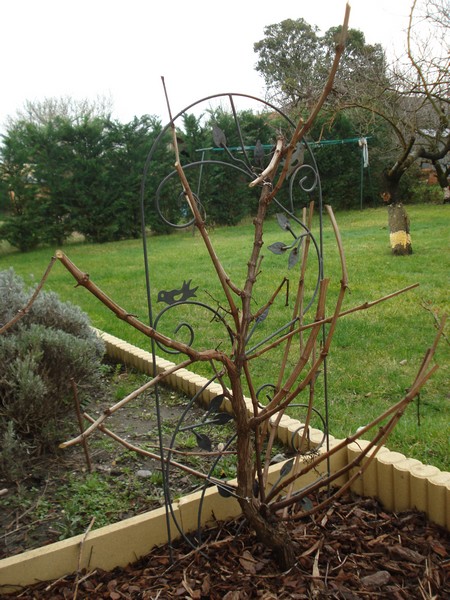 Me revoici. J'ai donc tenté de tailler encore un peu. Mais comme certains sarments se chevauchaient, je ne sais pas si je n'ai pas coupé aux mauvais endroits.