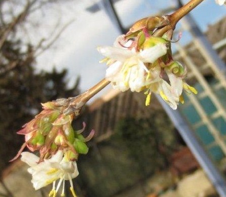 Allez, je vais persister sur le genre et me lancer pour Lonicera standishii, proche du fragrantissima avec l'odeur très prononcée en moins (bien qu'odorant tout de même), et les feuilles persistantes en plus.