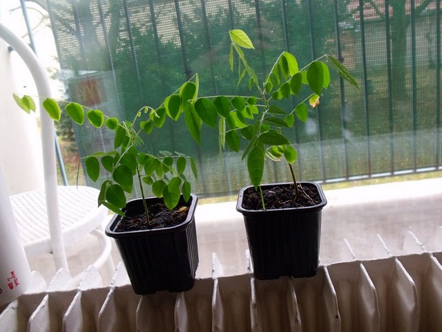 mes deux caramboliers de 6 mois replier sur pour la nuit