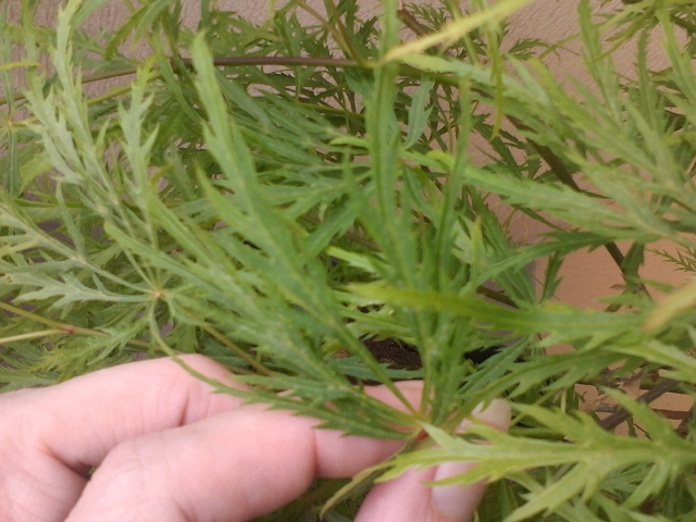 un acer dissectum viridis: il y a un léger duvet blanc sur les feuilles (déjà présent à l'achat), je commence à me demander si c'est normal ou si c'est ce qu'on appelle de l'oidium?