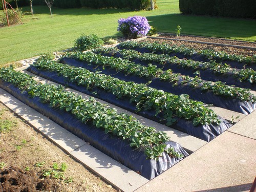 J'ai mis en place une douzaine de fraisiers sous film plastique noir cette année.