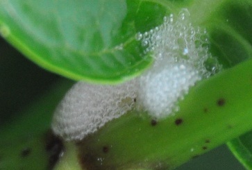Cette larve se nourrit de la sève de la plante et secrète cette "bave de coucou" qui la protège tant des intempéries que des prédateurs.