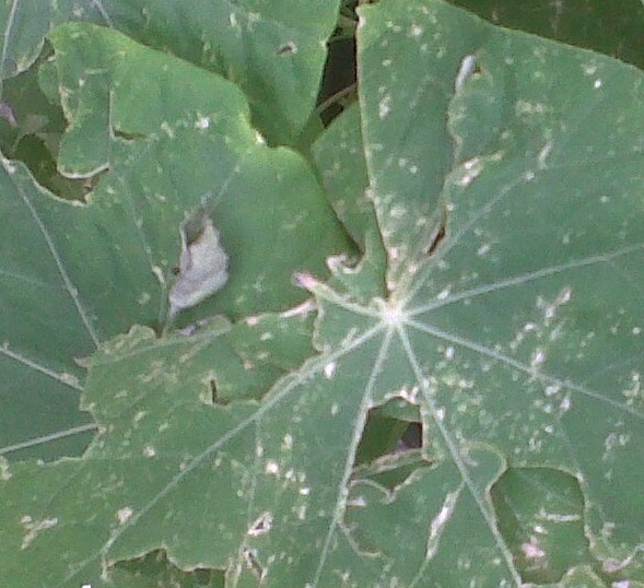 Ça peut paraître idiot, mais je n'arrive pas à déterminer si il peut s'agir de chenilles, de limaces (pas vu de traces brillantes laissées derrière elle) ou même d'oiseaux (certaines feuilles sont au 2/3 déchiquetées ... )