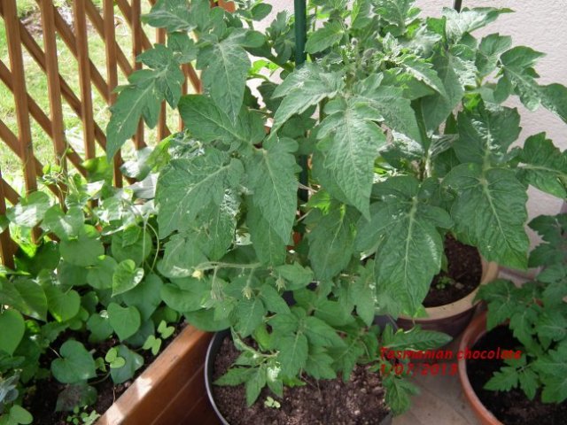 Les tomates vont mieux, elles ont repris un feuillage bien vert, mais je les trouve "hautes sur pattes", et certaines n'ont pas encore de fleurs
