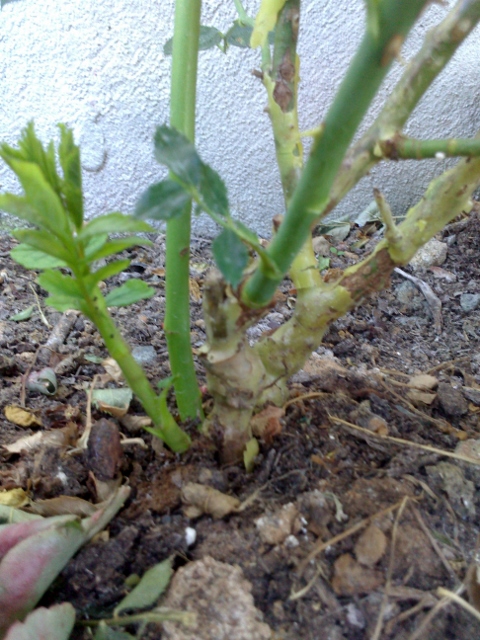 Pas toujours facile, pour un amateur, de distinguer un nouveau rameau du rosier d'un rejet du PG.