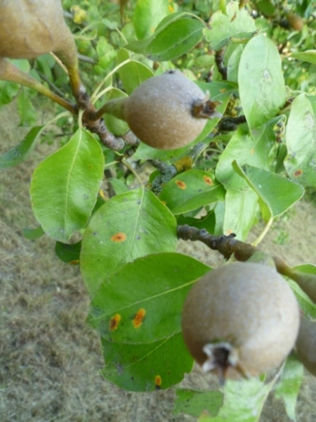 Ce qui m'inquiète, ce sont les taches de couleur orange qui parsèment ses feuilles (serait-ce la fameuse rouille?), et aussi le fait qu'il n'a pas beaucoup grandi en presque trois ans maintenant que j'habite là...