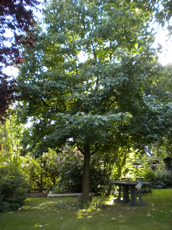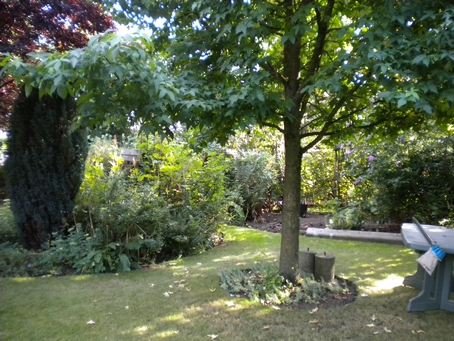 Les photos de la première série ne montrent pas le liquidambar, il s'agit du jardin de mes parents. Dans la deuxième série on l'aperçoit mais c'est vrai que c'est trop petit, je vais essayer de faire mieux, mais le programme refuse les photos supérieures à 250 K, je prends des photos et je poste de suite. Pour ce qui est de l'ombre je pense aussi à un mûrier (l'arbre pas le buisson à petits fruits). C'est facile à former pour en faire une espèce de parasol.