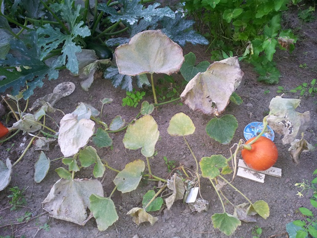 Me suis donc absenté 3 semaines pour vacances mais ouf quelqu'un s'est chargé d'arroser mon jardin...Résultat : d'un feuillage bien vert, mes potimarrons ont souffert...Alors coupable la personne ou maladie traité dans le sujet cité ci-dessus ?