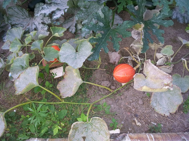 Par contre pour les potimarrons, voir les photos, les tiges se dessèchent, sauf proche du potimarron...est ce déjà la fin de ma récolte ? (un peu trop tôt je trouve). Ou est ce l’oïdium qui a finalement eu ma récolte... Est ce déjà trop tard ?