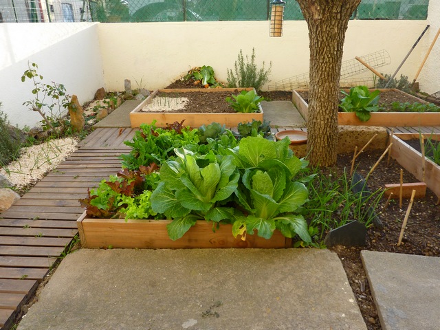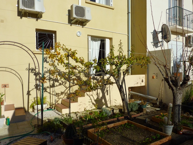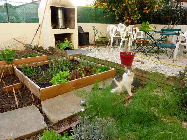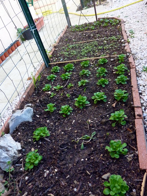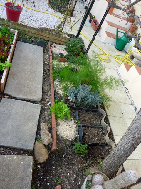 En fait, il y a un second jardin de l'autre côté de la maison (exposé en plein Nord et recevant le soleil jusqu'à midi en été). Il n'est pas aménagé, mais sera cultivé pendant les mois les plus chaud, avec notamment des espèces craignant la canicule (laitue, choux divers, radis, chicorées, navet, etc...).