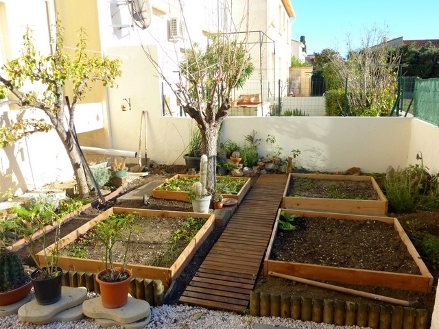 Ce jardin est exposé en plein Sud, abrité du vent et sous le soleil de ma région ça fait pas dans le sentiment ! C'est la fournaise. Donc je ne sais pas trop ce que je vais mettre l'été prochain.